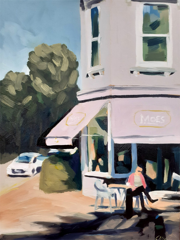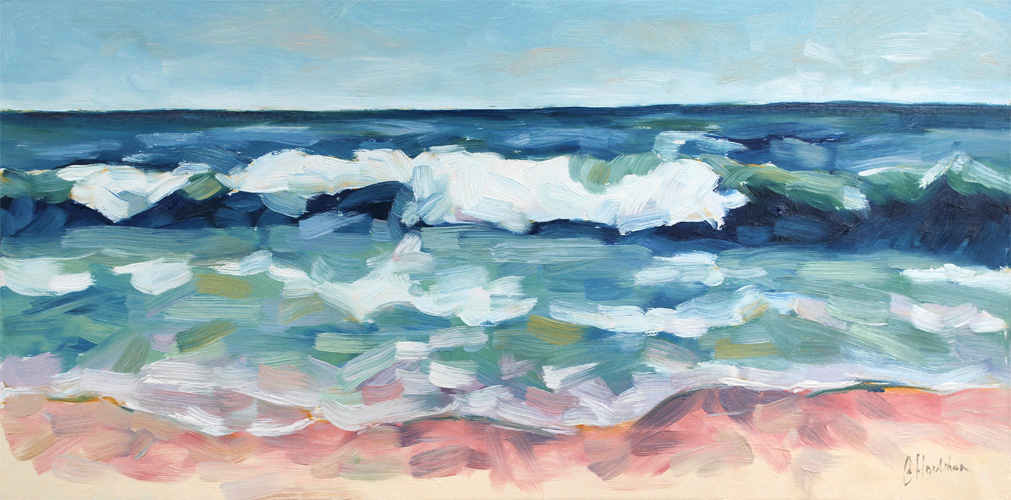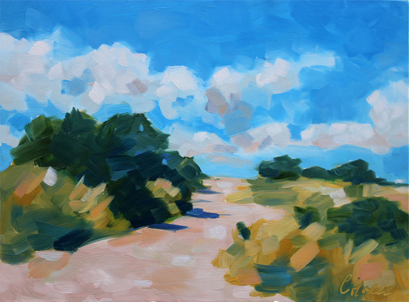I mostly paint on canvas for acrylic and panels for oils. I make my own natural wood float frames finished with 2 coats of varnish. Click to view larger image.